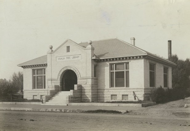 The Visalia Free Library served the community until it was outgrown and demolished in 1936. While Visalia’s Carnegie-era building is gone, several nearby communities still have their original Carnegie libraries, including Exeter (now a community building) and Orosi, where the original Carnegie structure continues to operate as a branch of the Tulare County Library system.